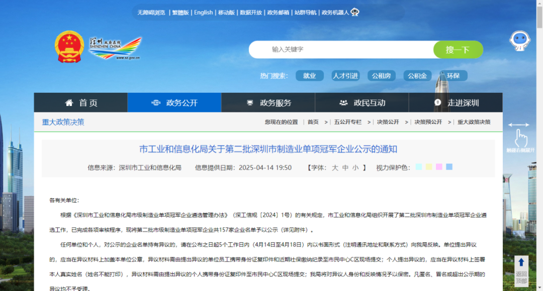 近日,深圳市工业和信息化局公布了第二批深圳市制造业单项冠军企业名单,我会会员单位捷顺科技凭借其在智慧停车领域的卓越表现成功入选,荣获深圳市“制造业单项冠军企业”称号。